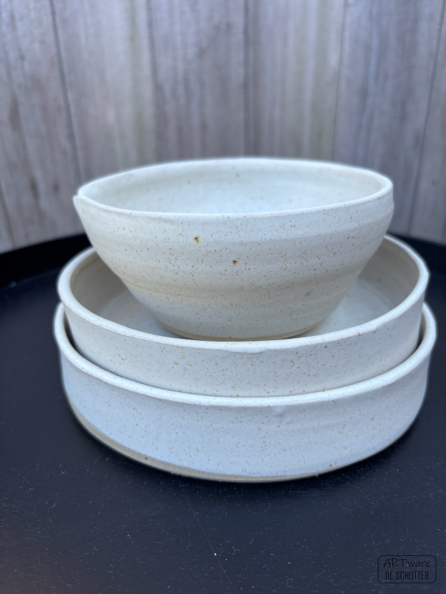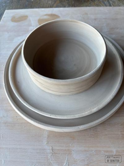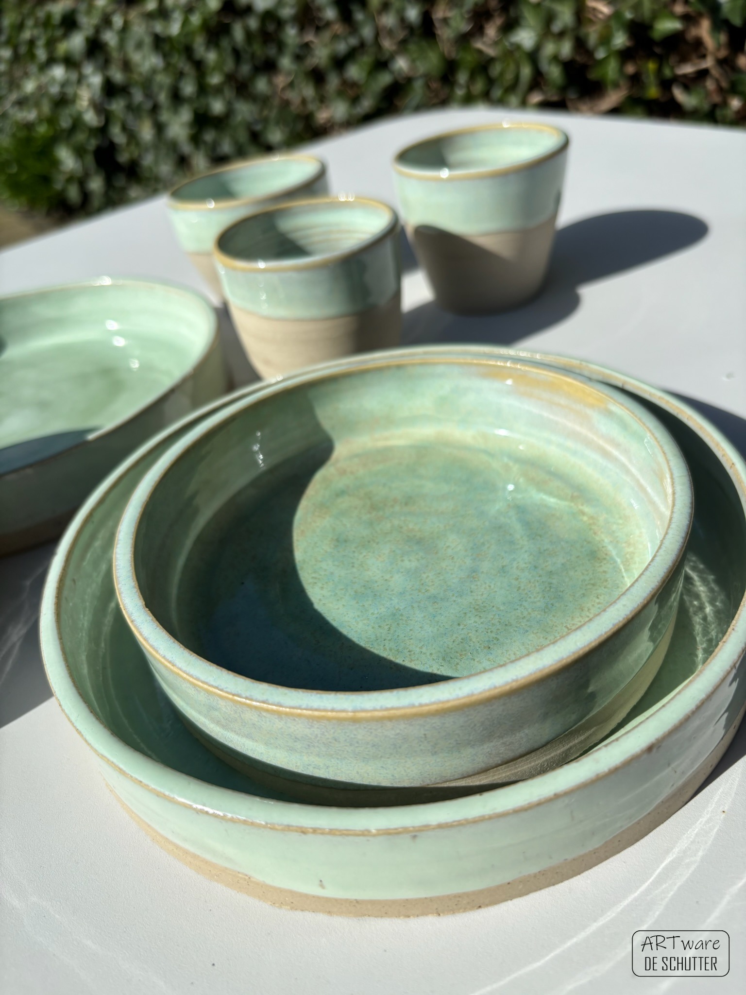 Vandaag vertaalt Lieve diezelfde liefde naar het pottenbakkersatelier. Aan de draaischijf ontstaan borden, kommen en schalen die niet alleen praktisch zijn, maar ook warmte en karakter brengen aan elke tafel.